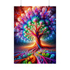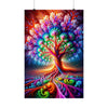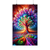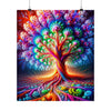 En el centro de esta impresionante pieza hay un imponente árbol fractal, cuyo tronco y ramas se despliegan en una danza interminable de colores y patrones vibrantes. Cada hoja, un microcosmos del todo fractal, brilla con tonos radiantes, lanzando un hechizo de luz y energía que atrae al espectador a acercarse.