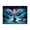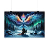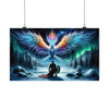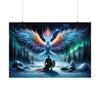 Contempla el cartel "Crystalline Elegance", una fascinante representación que captura la mágica convergencia de lo natural y lo mítico. Esta impresionante pieza visual da vida al raro e impresionante momento en el que el etéreo Fénix Cristalino adorna el reino de los mortales bajo el encantador resplandor de la aurora boreal.
