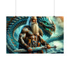Este póster captura un momento épico y promete una historia de aventuras, poder y el vínculo atemporal entre un legendario señor de la guerra y su bestia mítica. Evoca una sensación de asombro e invita al espectador a adentrarse en un mundo donde lo antiguo y lo mítico cobran vida.