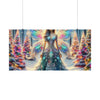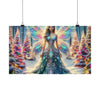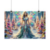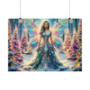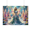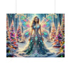 "Enchanted Fractal Frost": Sumérgete en el corazón de la magia del invierno con este deslumbrante póster, que presenta un majestuoso hada de las heladas envuelta en un vestido que imita los intrincados patrones de la escarcha. Sus alas, vastas y ornamentadas, brillan con la luminiscencia de innumerables cristales de hielo, reflejando un caleidoscopio de colores tomados de las luces parpadeantes de los árboles festivos ubicados en el bosque cubierto de nieve. La mirada serena y la elegancia serena del hada encarnan la serena belleza de una víspera de invierno. Cada remolino y espiral en su vestido y alas hace eco de los fractales naturales que se encuentran en los paisajes helados, invitando al espectador a creer en las encantadoras maravillas de la estación.