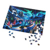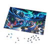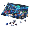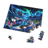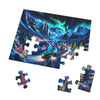 El rompecabezas "Enchanted Twilight Express" capturaría una escena de belleza mística, perfecta para aquellos que se deleitan con la fusión de las maravillas de la naturaleza y el espíritu navideño. La ilustración de este rompecabezas muestra un elegante tren deslizándose por un valle cubierto de nieve bajo la encantadora luz del crepúsculo. La locomotora, de diseño clásico, circula por una vía sinuosa que sigue la curva de un río sereno, reflejando el cielo estrellado de la noche. La orilla del río está llena de casas pintorescas, con sus ventanas resplandecientes, ofreciendo una sensación de calidez contra el frío del paisaje en tonos azules. Arriba, el cielo es un lienzo de vívidos azules y verdes, con la aurora boreal proyectando un brillo sobrenatural sobre la tranquila escena.