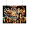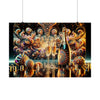 Sumérgete en la grandeza de la "Celebración Eterna" con este exquisito cartel. La obra de arte es un portal a una gala eterna, donde el tiempo se dobla en homenaje a la alegría que no tiene fin. Cada mirada revela una nueva capa de la festividad infinita representada, invitándote a perderte en los detalles que bailan en el lienzo.