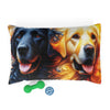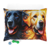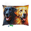 Presentamos la cama para mascotas "Ethereal Canine Mosaic", un lujoso lugar de descanso para su querido amigo peludo que combina comodidad con un toque artístico. Esta cama para mascotas presenta un diseño intrincado y vibrante de dos perros, uno adornado en tonos frescos y arremolinados de azules y negros, el otro en cálidos y radiantes naranjas y amarillos, ambos con la lengua afuera juguetonamente, capturando el espíritu alegre de nuestros compañeros caninos.