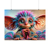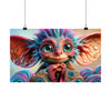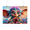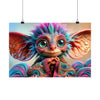 Este póster, lleno de colores vibrantes, captura los fascinantes y grandes ojos expresivos de Whispy que guardan los misterios de mil historias encantadas. Cada oreja puntiaguda y de gran tamaño está sintonizada con los antiguos susurros del bosque, bordeada con mechones de cabello rosa y azul que reflejan los colores de un amanecer al despertar y un atardecer en reposo.