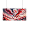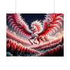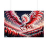 El cartel da vida a un mundo donde reina la armonía; una tierra llamada Aetherius, donde la flora y la fauna cantan en una sinfonía de vida, inspirada en la tranquilidad que acompaña el elegante vuelo de Pegaso. El fondo es un tapiz de bosques y cielos de ensueño que desdibujan la línea entre el día y la noche, un panorama vívido que promete convertir cualquier espacio en un santuario de paz.