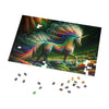 Diseñado para los entusiastas de los rompecabezas con ojo para el arte, este rompecabezas presenta una intrincada danza de tonos y formas que tentará los sentidos y cautivará la mente. El "Bosque Fractal" cobra vida en 1000 piezas, cada una de las cuales es un pequeño segmento de un gran tapiz que invita a ser descubierto. A medida que cada pieza encaja en su lugar, emerge el unicornio espectral, un guardián de la mística dentro de la maleza fractal arremolinada.