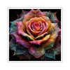 Cada pegatina es un lienzo que muestra la rosa radiante, floreciendo en medio de una red de delicadeza fractal. Los colores son un festín visual, con degradados que abarcan desde la calidez de una puesta de sol hasta la riqueza de la tierra. Las líneas y curvas detalladas alrededor de la rosa imitan los patrones matemáticos que se encuentran en la naturaleza, ofreciendo una visión de la belleza estructurada del universo.