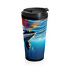 Embárcate en tus viajes diarios con la taza de viaje de acero inoxidable "Caleidoscopio de las profundidades". Este robusto compañero de viaje de 15 oz está diseñado para el explorador moderno que aprecia la belleza de las maravillas del océano. La taza de viaje presenta un cautivador diseño envolvente, donde una gran orca ocupa un lugar central, su cuerpo es un lienzo para una deslumbrante variedad de colores arremolinados y patrones elaborados que reflejan los fascinantes tonos del océano y la intrincada belleza de un caleidoscopio.