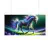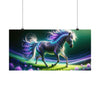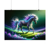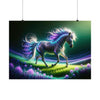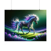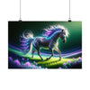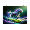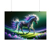 Adéntrate en un mundo donde lo místico se encuentra con lo magnífico con "Luminous Halo", una encantadora representación de una belleza surrealista. En el corazón de este paisaje de otro mundo hay una majestuosa cebra, cuyas rayas se arremolinan en patrones hipnóticos que bailan con iridiscencia contra su elegante silueta. Esta criatura etérea está coronada con una melena y una cola que estallan en un espectro de tonos radiantes, fluyendo como luz líquida hacia el vibrante éter. El suelo bajo sus cascos está lleno de la exuberancia de la flora de colores vivos, brillando suavemente como si estuviera imbuida de una luz interior, proyectando un aura de asombro onírico. Alrededor de esta escena hay una atmósfera resplandeciente con una suave luminiscencia, donde el aire mismo parece palpitar con la energía serena de un universo que no es del todo el nuestro. "Luminous Halo" no es sólo un espectáculo visual; es una invitación a soñar, una puerta de entrada a un reino donde lo fantástico retoza libremente. Perfecto para aquellos que aprecian la magia de la imaginación indómita, este póster promete lanzar un hechizo de asombro e inspiración en cualquier espacio que adorne.