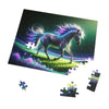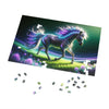 Sumérgete en el desafío y el encanto del rompecabezas "Luminous Halo", una experiencia fascinante que promete cautivar y deleitar a los amantes de los rompecabezas de todas las edades. Cada pieza es una puerta de entrada a un mundo extraordinario donde reina la fantasía. La estrella de este rompecabezas es una cebra fascinante, cuyas rayas hipnóticas y arremolinadas forman un patrón complejo que te tentará a encajar cada pieza con cuidado. Su melena y cola no son simples hebras, sino cintas de luz radiante, que se arremolinan en azules y morados, creando un rompecabezas dentro de otro rompecabezas que es tan desafiante como hermoso.