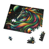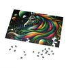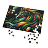 Este rompecabezas, titulado "Elegancia orbital", presentaría un majestuoso unicornio de temática cósmica con una melena multicolor y fluida que gira en espiral hacia la oscuridad del espacio. La melena y la cola del unicornio están pintadas en tonos vibrantes que se mezclan perfectamente entre sí, imitando la vasta y misteriosa belleza del universo. Con un telón de fondo plagado de estrellas, planetas y galaxias, la imagen transmite una sensación de asombro y de otro mundo. Los intrincados detalles y el espectro de colores hacen de este rompecabezas un desafío y un deleite para los amantes de los rompecabezas que aprecian los temas de fantasía y espacio. El rompecabezas terminado ofrecería un espectáculo visual impresionante, perfecto para enmarcar y exhibir.