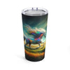 Presentamos el vaso de acero inoxidable de 20 oz "Quantum Canter", donde la practicidad de una taza de viaje se combina con la mística del cosmos. Envuelto alrededor de este vaso duradero hay una imagen de alta definición de un majestuoso unicornio, su pelaje es una nebulosa arremolinada de colores vibrantes contra el telón de fondo de una puesta de sol impresionante y la extensión infinita de un campo dorado.
