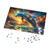 Cada pieza de este rompecabezas es un desafío para la mente y un placer para la vista. La interacción de luces y sombras, el brillo de los patrones cósmicos en la piel del delfín y el mar tumultuoso se unen para crear un cuadro complejo que cautivará a los rompecabezas durante horas y horas.