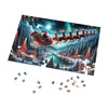 Embárcate en 'Santa's Starlit Journey', un cautivador rompecabezas de 1000 piezas que te transporta a una escena mágica de Nochebuena. Bajo el resplandor de una luminosa luna llena y un cielo salpicado de estrellas, Papá Noel está representado en su trineo ricamente decorado, conducido por su tiro de majestuosos renos adornados con luces parpadeantes. Se elevan sobre un pintoresco pueblo invernal, donde las casas cubiertas de nieve brillan con luces festivas y el paisaje cobra vida con el espíritu de la estación.
