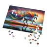 Una vez completado, el rompecabezas sirve como una pieza central vibrante, una obra de arte digna de enmarcar. La imagen completa es un espectáculo de color que captura al Spectrum Strider en medio del galope, con su melena ondeando con vida propia. Los reflejos en el agua debajo añaden profundidad y un equilibrio sereno a la viveza de arriba, convirtiéndolo en un rompecabezas que es a la vez vigorizante y calmante para el alma.