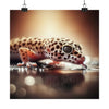 Contempla la impresionante belleza de esta imagen, donde se captura a un gecko moteado en el acto de beber con asombrosa precisión. Los detalles nítidos de cada escala y la textura sutil de su piel hacen que esta fotografía sea verdaderamente fotorrealista, como si casi pudieras sentir la gota de agua fría contra tu piel. Los ricos tonos de color, desde verdes vibrantes hasta cálidos tonos terrosos, infunden a la escena una sensación de vida y vitalidad. El tema increíblemente detallado, sobre un fondo bokeh cremoso, crea un ambiente íntimo que invita a los espectadores a ser parte de este momento sereno, donde la sed del gecko se sacia momentáneamente.