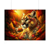 Ideal para una sala de estar, estudio o cualquier espacio donde se aprecie la magia de las transformaciones de la naturaleza, este cartel aporta no solo una imagen, sino una historia a tu entorno. Es un recordatorio diario de los ciclos de la naturaleza, el poder silencioso de lo salvaje y el intrincado tapiz de la vida. Ya sea que esté comenzando el día con una taza de café o relajándose con un libro, "Ember Spirit: The Cougar's Mosaic Soul" ofrece un momento de belleza y contemplación.
