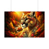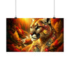 Impresa en papel de alta calidad resistente a la decoloración, esta obra de arte será la pieza central de su habitación, invitando a la conversación y la admiración. Los colores son ricos y profundos, con rojos, naranjas y dorados tan vívidos que casi se puede escuchar el susurro de las hojas otoñales. El nivel de detalle lo invita a acercarse, a perderse en los intrincados patrones que adornan el pelaje del puma, cada remolino y espiral es un testimonio de la belleza de la naturaleza.