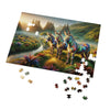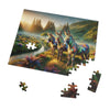 Este rompecabezas, con sus intrincados detalles, no sólo promete horas de interesante actividad sino que también trae el esplendor de un reino mágico a su hogar. Los gentiles gigantes se encuentran en medio de un exuberante follaje, donde la flora es tan viva y vibrante como los fascinantes patrones de los burros. El tranquilo río que serpentea por el valle añade un nivel de calma relajante al desafío general del rompecabezas.