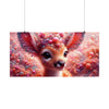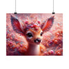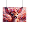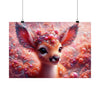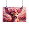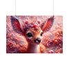 Este encantador póster presenta la cautivadora imagen de Lumin, el cervatillo encantado del mítico Bosque Fractal. La pieza central es el cervatillo de ojos saltones y mirada tierna, que invita a los espectadores a un mundo de maravillas. Sus majestuosas astas florecen en una corona de flora fractal, adornada con cuentas y perlas que brillan como el rocío de la mañana. La suave paleta de colores pastel de rosas, corales y blancos cremosos crea una atmósfera de ensueño que parece palpitar con la magia de la naturaleza.