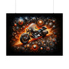 Revela el póster "El motor de las estrellas", una obra maestra que atrae la mirada de cualquier espectador hacia la inmensidad del cosmos. Esto no es simplemente un cartel; es un portal al plano astral, donde la majestuosa danza de los engranajes celestiales cautiva e inspira. Diseñado para el ojo exigente, presenta los intrincados detalles de una motocicleta cósmica, sus engranajes casi vivos con un tono dorado y ardiente que refleja la esencia ardiente de las estrellas.