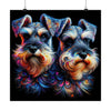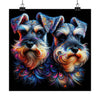 Ingrese a un mundo donde la fantasía de la imaginación se encuentra con el vínculo de la hermandad con nuestro encantador póster "Whirls of Whiskers". Esta impresionante imagen captura la esencia mágica de Shinto y Tintor, dos etéreos Schnauzers miniatura, cuyo pelaje vibrante y arremolinado está tejido a partir del tejido mismo de los sueños. Cada hebra de sus fantásticos abrigos es una pincelada de la paleta ilimitada del universo, creando una fascinante danza de colores que atrae la vista y captura el corazón.