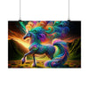 Deja que este cartel sea más que una decoración; que sea una inspiración, un recordatorio diario de los reinos ilimitados de la fantasía y la belleza que existe en la intersección de la imaginación y la realidad. Ya sea como un regalo para usted o para un ser querido, "Ethereal Elegance: The Fractal Unicorn" es un portal a un mundo donde la magia no sólo es posible, sino que está vibrantemente viva.