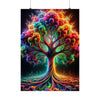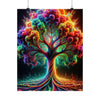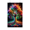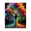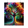 Experimente la vibrante fusión de naturaleza y fantasía con el póster 'The Neon Grove'. En el centro de esta fascinante imagen hay un árbol majestuoso que trasciende lo ordinario, con sus ramas y hojas explotando en un caleidoscopio de colores neón. Tonos vívidos de azul eléctrico, rosa intenso, naranja intenso y verde lima se entrelazan para formar una impresionante exhibición que se asemeja más a un evento cósmico que a la flora terrestre. El tronco y las ramas del árbol están delineados en un turquesa radiante que brilla con una luz interior, creando una sensación de profundidad y movimiento que atrae la atención hacia la explosión de colores del dosel. Debajo, el suelo está lleno de vida con un patrón arremolinado de la misma paleta de neón, lo que sugiere una tierra mística donde las leyes habituales de la naturaleza son reemplazadas por algo mágico. Este cartel es una celebración del color y la creatividad, un festín visual que invita al espectador a adentrarse en un mundo donde la imaginación florece tan salvajemente como los colores que la pintan.