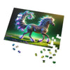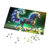 Rompecabezas "Twilight Mane": Embárcate en un viaje de maravillas y desafíos con este exquisito rompecabezas de 1000 piezas. Pieza a pieza, da vida a la fantástica imagen de una cebra cuyas rayas forman espirales en patrones fascinantes, mezclándose a la perfección en una melena y una cola de belleza cósmica. Los toques de violetas vivos y azules brillantes crean un efecto fractal que captura la esencia del crepúsculo. La cebra camina por una exuberante pradera esmeralda salpicada de una flora caprichosa, bajo un cielo donde la luz del día besa la noche, con las primeras estrellas de la tarde comenzando a brillar. Involucra tu mente y enciende tu imaginación mientras montas este mágico cuadro crepuscular. Perfecto tanto para los entusiastas de los rompecabezas como para los soñadores, el rompecabezas "Twilight Mane" promete horas de actividad absorbente con una impresionante obra de arte para admirar una vez terminado.