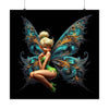 Sobre un fondo oscuro, el hada y sus alas luminiscentes se convierten en el punto focal, capturando la imaginación del espectador y atrayéndolo a un mundo de fantasía e intriga lúdica. El efecto general es de fantasía y encanto, perfecto para un cartel que pretende añadir un toque de magia y picardía a cualquier espacio.