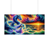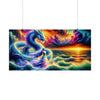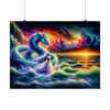 "Susurros de la Marea Celestial" no es sólo un cartel; es una invitación a presenciar la grandeza de una saga eterna donde el ballet celestial entre el dragón y la doncella encapsula la interacción sublime de la tierra y el cielo. Es un tributo a las fuerzas invisibles que tejen el tejido del cosmos, una pieza imprescindible que promete transformar tu espacio en un portal a otro mundo, resonando con la mística y el esplendor de una danza eterna al borde del crepúsculo.