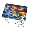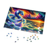 El sol poniente proyecta un brillo dorado sobre la escena, ofreciendo una revelación gradual de los tonos vibrantes y los detalles intrincados de cada pieza del rompecabezas conectada. Las ondas dinámicas, capturadas en el momento del crepúsculo, presentan un delicioso desafío para los entusiastas de los rompecabezas, con sus complejos patrones y sutiles gradaciones de color.