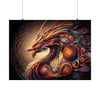 Los ojos de la criatura, feroces y como brasas, atraviesan al espectador, exigiendo atención y reverencia. Este cartel no representa simplemente un dragón; saca a relucir la esencia de la tutela mítica y la belleza eterna que ha inspirado a artistas y soñadores a lo largo de los siglos.