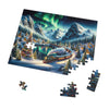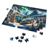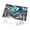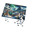 Embárquese en un viaje mágico con el 'Yuletide Express Jigsaw Puzzle', que presenta un fascinante país de las maravillas invernal. Este rompecabezas de 1000 piezas te transportará a un sereno pueblo nevado, ubicado al pie de majestuosos picos nevados bajo el encantador resplandor de la aurora boreal.