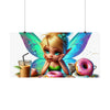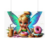 Imaginez cette affiche dans votre maison, un phare de joie et un démarreur de conversation qui vous encourage à faire une pause et à apprécier la magie des moments quotidiens, un peu comme notre fée savourant sa friandise du matin.