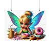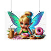 Dimensionnée pour faire impression sans surcharger votre espace mural, cette affiche est parfaite pour la cuisine, la salle à manger ou tout autre endroit où vous vous réunissez pour profiter des plaisirs simples de la vie. Il est conçu pour résister à la décoloration, garantissant que la fée et ses friandises restent aussi vibrantes que votre première matinée magique avec elles.