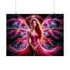 Transformez votre espace de vie en portail vers le cosmos avec le poster "Rose d'Automne". Ce n’est pas une œuvre d’art ordinaire ; c'est une porte d'entrée vers un univers où fantaisie et réalité se confondent. La figure centrale, gardienne du changement, se tient résolument avec des ailes qui couvrent les dimensions, détaillées avec une finesse fractale qui commande le regard. Sa robe, une rivière de rubis coulant à travers un univers crépusculaire, scintille de la lumière d'étoiles lointaines. Chaque teinte de rouge, de rose et d'or est choisie pour évoquer la chaleur et la profondeur d'un coucher de soleil d'automne, tandis que la toile de fond de l'espace nous rappelle les possibilités infinies qui se trouvent au-delà de notre monde.