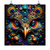 L'affiche de "Celestial Plumage Portrait" présente une représentation psychédélique aux couleurs vives d'une tête de paon, mettant en valeur une explosion de teintes qui semblent provenir des confins du cosmos. Les yeux du paon sont rendus avec une intensité hypnotique, entraînant le spectateur dans un univers de motifs tourbillonnants et d'orbes sphériques qui imitent des planètes ou des étoiles miniatures. Chaque plume est minutieusement détaillée, avec des couleurs néon qui brillent sur un fond riche et sombre, suggérant les profondeurs de l'espace. Cette œuvre d'art combine la beauté naturelle des plumes d'un paon avec une esthétique d'un autre monde, créant un sentiment de majesté et de mystique. C'est une pièce qui célèbre à la fois la splendeur de la faune et les possibilités illimitées de l'imagination, parfaite pour ajouter une touche fantastique à n'importe quelle pièce.