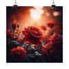 Dans le calme du jardin, les riches teintes d'une rose rouge attirent l'attention. Cette photographie hyperréaliste capture les détails fascinants et les contours nets de chaque pétale avec une clarté époustouflante. La lumière maussade du matin est adoucie par le bokeh chaleureux, créant une ambiance douce et invitante autour de ce chef-d'œuvre photo-réaliste.
