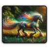 La surface du tapis de souris présente le design fascinant « Enchanted Elegance », avec son cheval majestueux qui semble sortir d'un rêve magique. Le spectre vibrant de couleurs dans la crinière et la queue fluides du cheval crée un spectacle visuel de motifs tourbillonnants, chaque détail imprimé en haute définition pour captiver et inspirer. Les embellissements en filigrane et ornementaux qui ornent la forme du cheval ne sont pas seulement visuellement époustouflants, mais servent également à améliorer l'expérience tactile du tapis de souris.