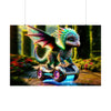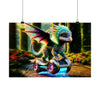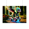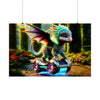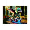 L'affiche « Enchanted Glide : The Whimsical Dragon's Journey » est une œuvre d'art fascinante qui promet d'être la pièce maîtresse de n'importe quelle pièce. Imaginez le petit dragon, Flicker, capturé dans un moment de mouvement serein, les ailes déployées dans un splendide déploiement de couleurs et de fantaisie. L'affiche, de taille idéale pour attirer l'attention sans surcharger votre espace, présente Flicker en train de glisser sur un chemin pavé qui se faufile à travers un jardin d'un autre monde dans la douce étreinte du crépuscule.