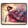 Le point culminant de ce tapis de souris est l'impressionnante impression en couleur de « Floral Elegance in Motion », représentant une silhouette captivante entourée d'un éventail florissant de fleurs, chaque détail prenant vie de manière vivante. Les couleurs sont riches et immersives, créant un spectacle visuel qui non seulement inspire mais personnalise également votre espace de jeu.