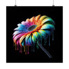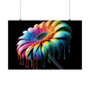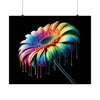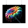 Préparez-vous à être transporté dans un royaume où réalité et art s'entremêlent en contemplant une gerbera arc-en-ciel hyper-réaliste, soigneusement représentée avec une précision étonnante. Chaque pétale est imprégné d’une explosion de couleurs vives qui se mélangent et se fondent sans effort, créant un régal optique fascinant pour les yeux. Sur la toile d'un noir profond, les gouttelettes cascadent délicatement, ornant la fleur d'une touche de mouvement dynamique et ajoutant un élément de mystère à ce chef-d'œuvre enchanteur.