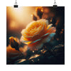 Au milieu de la sérénité d’un jardin, une rose jaune symbolise la joie et la beauté. Dans cette photographie hyperréaliste, les détails nets capturent chaque aspect délicat de la fleur, de la texture complexe des pétales au doux balancement des feuilles. La lumière maussade du matin projette une lueur chaleureuse et invitante, rehaussant les tons de couleurs vibrants et créant une ambiance magique.
