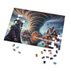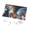 Plongez dans « Holiday Havoc : The Twister of the North » avec ce puzzle captivant de 1 000 pièces. Une scène tout droit sortie d'un conte fantastique hivernal se déroule, mettant en scène un personnage mystérieux enveloppé dans un manteau en lambeaux, le regard fixé sur une imposante tornade qui spirale au milieu d'un village festif. Le tourbillon chaotique disperse la joie des fêtes dans un tourbillon de cannes de bonbon, d'ornements et de flocons de neige, tandis que la ville tranquille en contrebas brille chaleureusement avec les lumières de la fête. Cette image saisissante allie l’esprit joyeux de la période des fêtes avec une touche de chaos palpitant, créant une expérience déroutante aussi stimulante qu’enchanteresse. Parfait pour ceux qui aiment le côté fantastique des vacances d'hiver, ce puzzle mettra non seulement vos compétences à l'épreuve, mais deviendra également une pièce maîtresse de conversation pour votre décor de vacances.