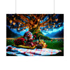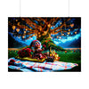 Entrez dans le royaume de l'enchantement avec « Iceglitter's Enchanting Valentine », une affiche fantaisiste qui capture le cœur d'une célébration magique de la Saint-Valentin. Au centre, Iceglitter, la joyeuse gnome femelle, vous invite dans son monde envoûtant sous les branches d'un arbre ancien et impressionnant, illuminé par une tapisserie de lumières scintillantes et de cœurs dorés radieux. La scène est animée par la douce luminescence des lucioles, projetant une lueur sereine sur une prairie luxuriante et verdoyante.
