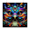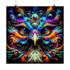 L'affiche de "Infinite Feather Voyage" présente un spectacle fascinant de couleurs kaléidoscopiques. Il présente en son centre un paon stylisé, dont les plumes semblent s'étendre à l'infini dans l'espace environnant. Le plumage de l'oiseau est une explosion fantastique de teintes vibrantes, avec des bleus électriques, des violets vifs et des oranges ardents se fondant dans un motif presque psychédélique. Les yeux sur les plumes sont rendus avec des détails hypnotiques, chacun étant un univers en soi, entraînant le spectateur dans un voyage profond et cosmique. Les yeux du paon sont émouvants et vivants, une porte d'entrée vers les mystères incalculables qui se cachent dans cette créature à l'imagination sans limites. L’œuvre invite les spectateurs à se lancer dans une aventure éthérée, un vol au-delà du banal, dans les royaumes de la créativité et de l’émerveillement purs et débridés.