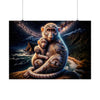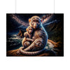 "Embrassez le lien infini entre la mère et l'enfant avec 'Infinity in a Mother's Embrace'. Cette affiche captivante représente un moment de tendresse partagé par deux singes, leurs silhouettes gravées sur un paysage nocturne à couper le souffle. La mère singe, ornée de motifs complexes et tourbillonnants qui symbolisent la nature éternelle de l'amour, tient son bébé près de lui, créant une aura de protection et chaleur. La riche tapisserie de leur fourrure contraste avec les falaises escarpées et l'océan serein en arrière-plan, sous un ciel parsemé d'étoiles. Le décor cosmique souligne l'immensité de leur lien, un amour aussi illimité que l'univers lui-même. Cette affiche est un hommage à la puissance universelle de l'amour maternel, un chef-d'œuvre qui remuera l'âme et réchauffera le cœur.
