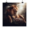 Alors que je m'approchais du magnifique lion, mon cœur battait à tout rompre avec un mélange de crainte et de révérence. Il gisait sur le rocher rugueux et érodé, sa crinière tombant en cascade autour de son visage royal. Avec une main ferme et un sens aigu du détail, j’ai capturé les détails nets et l’essence photoréaliste de la scène. Les riches tons de couleurs, des teintes dorées de la fourrure du lion aux tons terreux de la roche, dressaient un tableau fascinant. Le rendu incroyablement détaillé mettait en valeur chaque brin de la majestueuse crinière du lion et chaque texture de son environnement. Et tandis que le bokeh crémeux brouillait l'arrière-plan, un silence tomba sur l'image, créant une ambiance intime qui me donnait l'impression d'être dans un voyage méditatif aux côtés de cette magnifique créature.