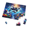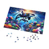 La complexité du puzzle est renforcée par les détails complexes du récif de corail qui abrite cette scène maternelle. Des teintes vives et des formes fantastiques s'entremêlent, créant une représentation époustouflante du sanctuaire sous-marin. Alors que la lumière du soleil traverse l'eau au-dessus, projetant des rayons éthérés sur ce tableau aquatique, vous reconstituerez l'essence lumineuse des profondeurs de l'océan.